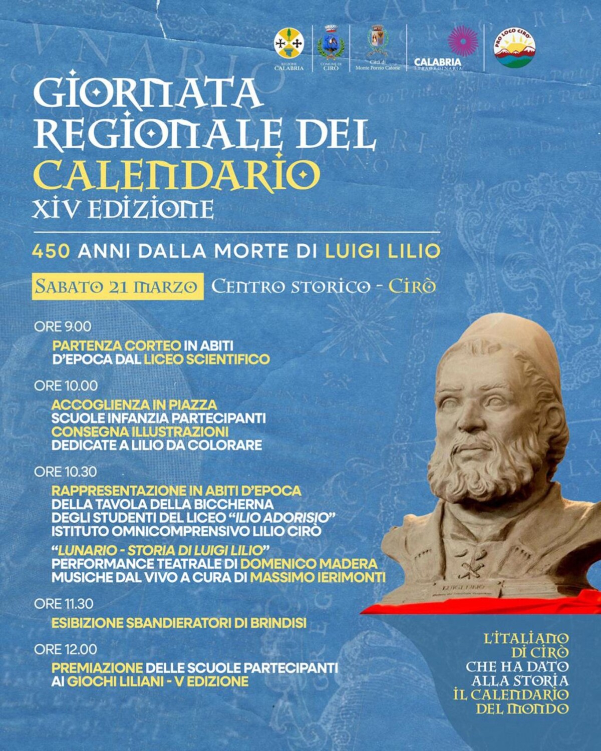 • Sabato 21 marzo a Cirò si terrà la XIV Giornata Regionale del Calendario, dedicata ai 450 anni dalla morte di Luigi Lilio
