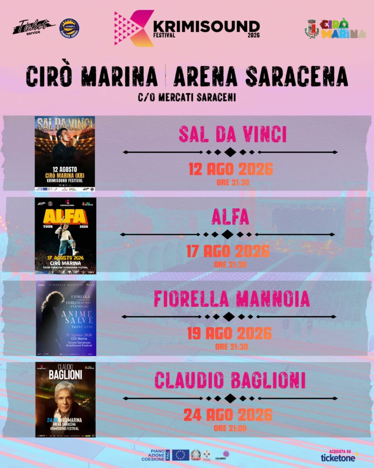 I biglietti sono già disponibili su TicketOne, sul sito Ticket Service Calabria e presso i punti vendita autorizzati.