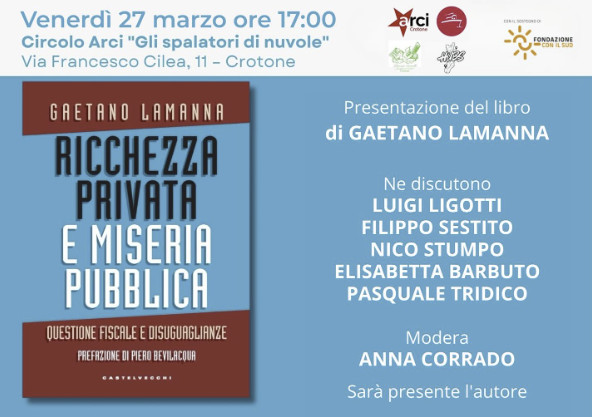 Disuguaglianze e giustizia fiscale: a Crotone la presentazione del volume “Ricchezza privata e miseria pubblica. Questione fiscale e disuguaglianze”