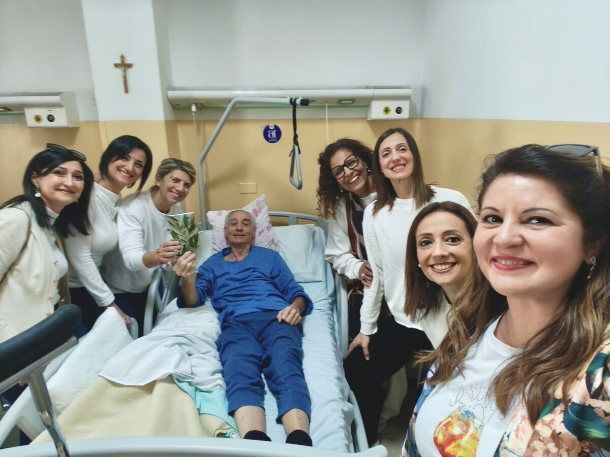 Accompagnata da sei ragazze del gruppo, la coach ha voluto condividere un momento di umanità e attenzione verso i pazienti ricoverati, donando loro un simbolo profondamente radicato nella tradizione: l’ulivo benedetto. Un segno di pace, speranza e rinascita, particolarmente significativo in una giornata così importante dal punto di vista religioso.
