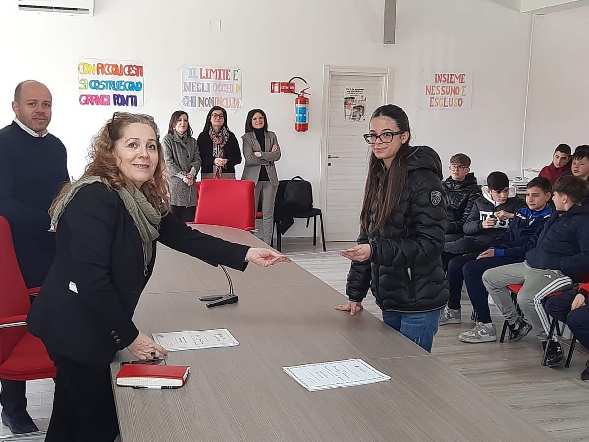 STRONGOLI – Una mattinata all’insegna della cultura e dell’impegno civico quella vissuta dagli studenti dell’Istituto Omnicomprensivo “Biagio Miraglia”. Le classi terze della scuola secondaria di primo grado sono state le protagoniste assolute della cerimonia di consegna degli attestati FAI (Fondo per l’Ambiente Italiano), un riconoscimento ufficiale per il prezioso contributo offerto durante le Giornate FAI di Primavera, tenutesi il 21 e 22 marzo scorsi. Alla cerimonia erano presenti il Sindaco, prof. Francesco Benincasa, la Dirigente Scolastica, Dott.ssa Marina Agostino, la delegata FAI, prof.ssa Francesca Biafora, e i docenti dell’Istituto. Le giornate hanno registrato un notevole successo, con la partecipazione di numerosi visitatori provenienti da diverse località della regione; Strongoli si è infatti classificata al secondo posto in Calabria per numero di visitatori.Questo risultato è stato possibile grazie alla collaborazione sinergica tra diverse istituzioni: l’I.O. “Biagio Miraglia” di Strongoli, la Delegazione FAI, l’Amministrazione comunale e le associazioni presenti sul territorio. Questa iniziativa ha rivelato che la nostra scuola non è soltanto un luogo dove si trasmette il sapere o nozioni, cioè conoscenze (sapere) e abilità (saper fare), ma è riuscita a creare un “laboratorio di apprendimento a cielo aperto” per le vie di Strongoli. In questo contesto, i ragazzi hanno dimostrato di possedere competenze che emergono quando conoscenze e abilità vengono messe in pratica in situazioni reali. Pertanto, gli studenti non hanno mostrato soltanto di sapere o saper fare, ma anche di saper essere, esprimendo competenze in materia di cittadinanza e di consapevolezza ed espressione culturale, tutti concetti richiamati dalle indicazioni nazionali e dalle otto competenze in chiave europea.