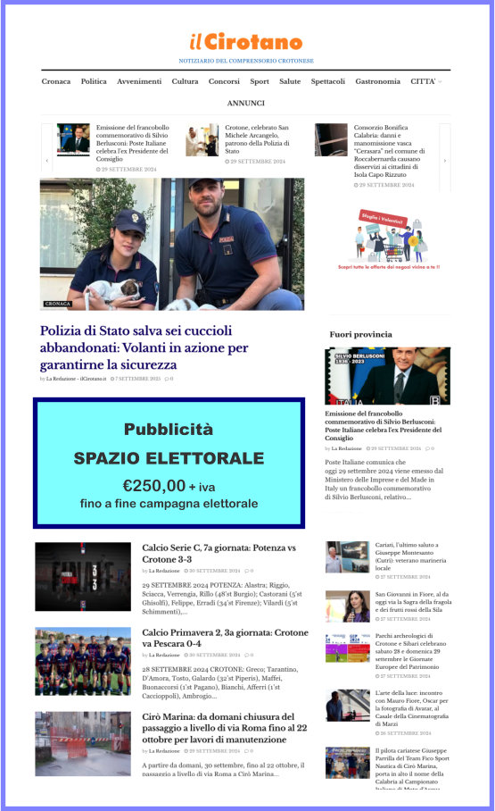 Codice di autoregolamentazione per la Pubblicitá Elettorale delle Elezioni Regionali in Calabria del 5 e 6 ottobre 2025 sul nostro giornale online “ilCirotano.it”.